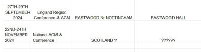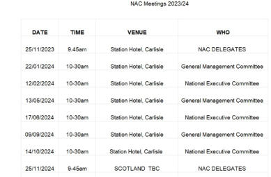 The NAC Executive Committee (EC) has set the dates for the 2022 NI regional meetings, and these